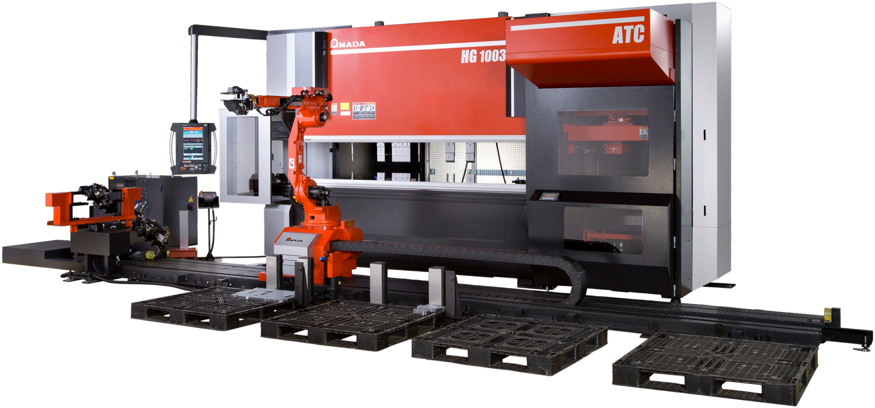 HG-1003 ARs je založený na osvedčenej technológii špičkového ohraňovacieho lisu AMADA HG-ATC, ktorý využíva hybridný pohonný systém ECO a automatickú výmenu nástrojov na rýchle a presné nastavenie nástrojov. Nakladanie/vykladanie materiálu a ohýbanie sú vykonávané jediným kĺbovým robotom so 6 osami a 1 osou pohybu, ktorý je schopný vykonávať celý rozsah pohybov. Systém HG-1003 ARs dokáže ohýbať zložité tvarované diely bez viacnásobného nastavovania a prevádzkovať nepretržitú výrobu po dlhšiu dobu.
