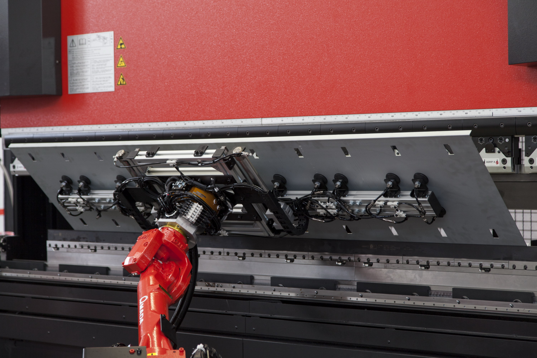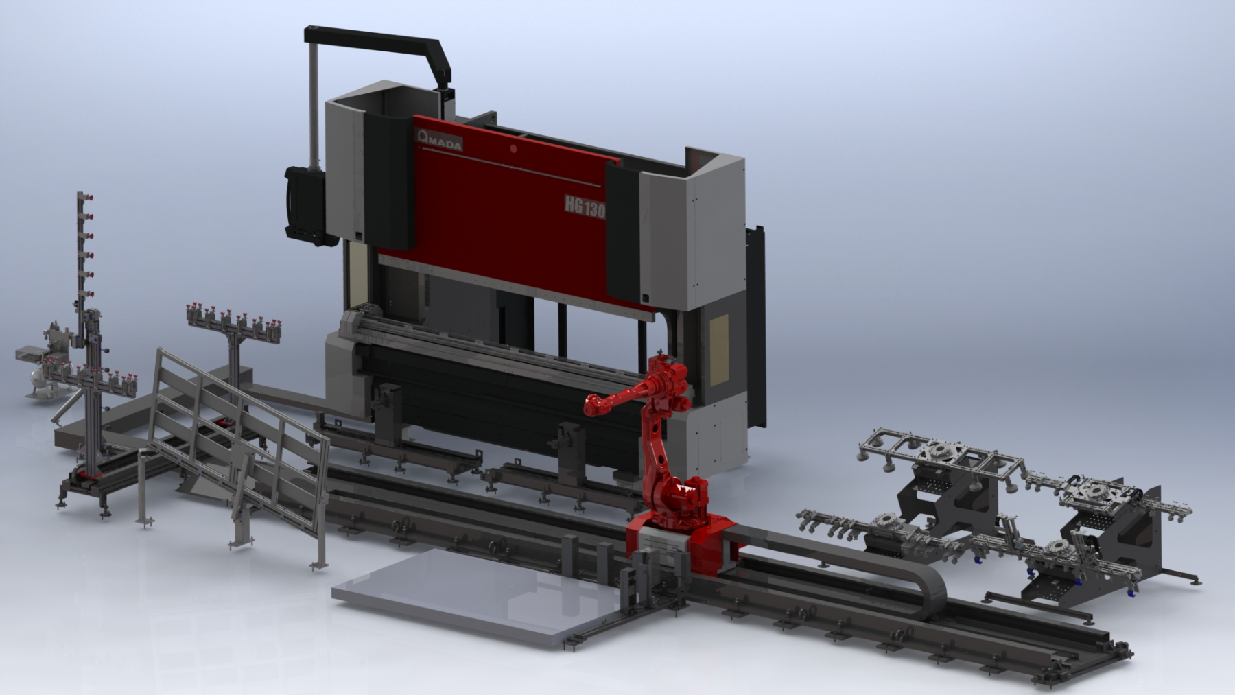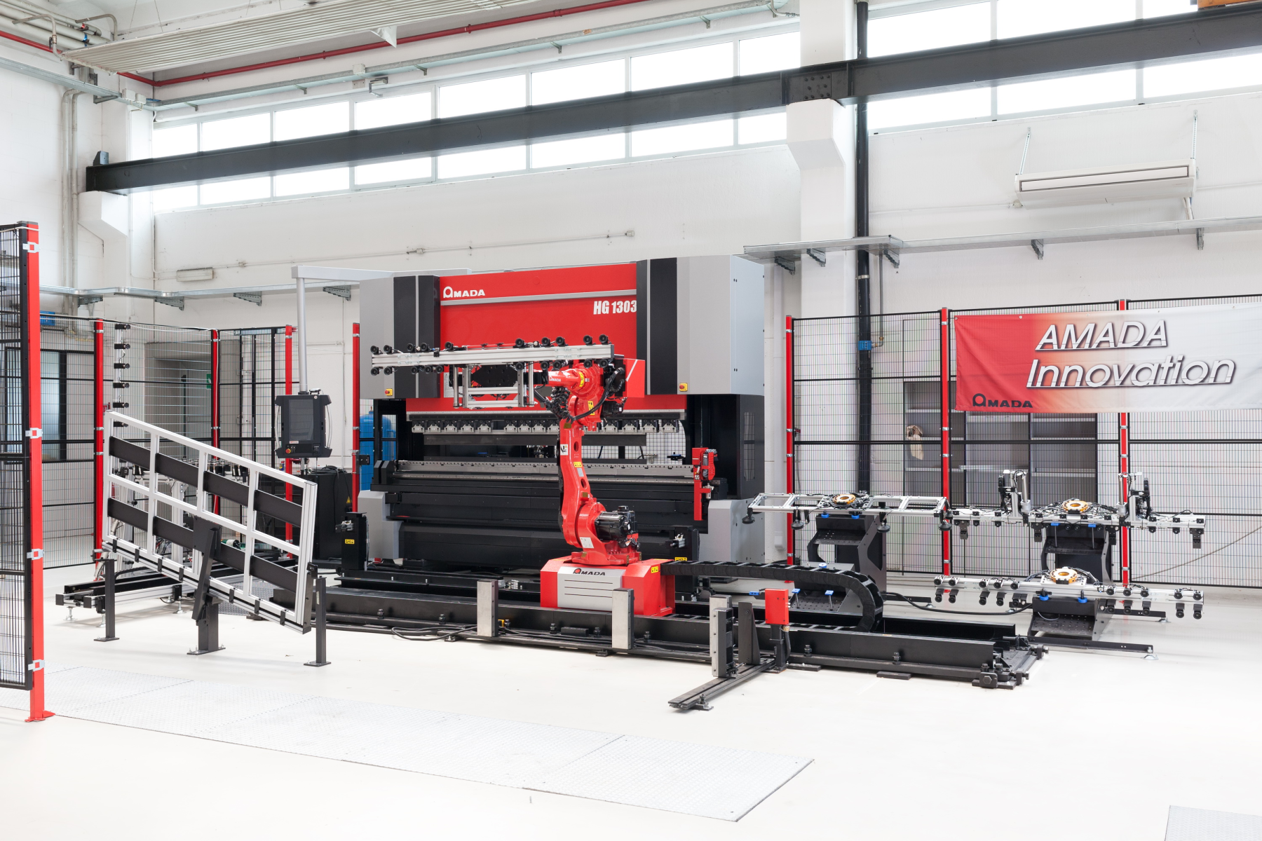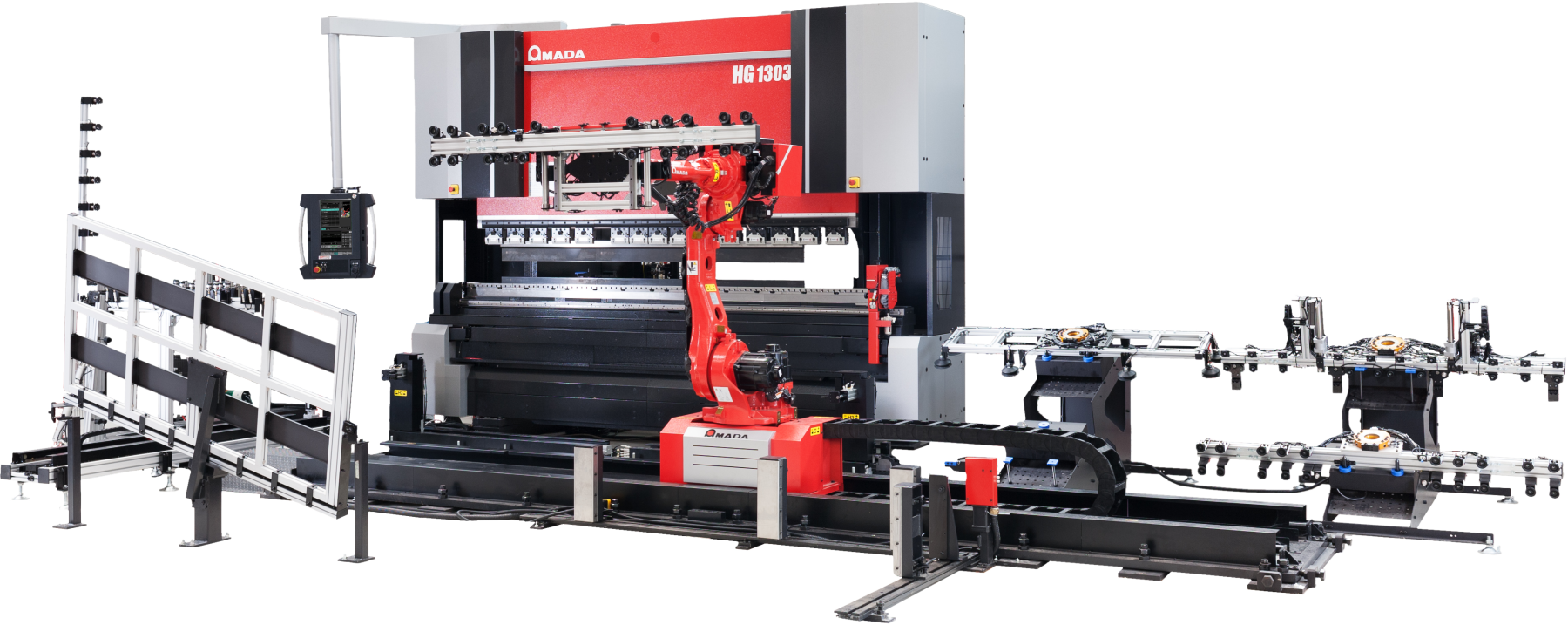 7-osový kĺbový robot (šesť osí pohybu plus jedna os pojazdu) môže vykonávať celý cyklus ohýbania: nakladanie, ohýbanie, v prípade potreby premiestňovanie a vykladanie. Automatické prechytávanie veľkých panelov je vybavené 2 motorizovanými ramenami a automatickými podperami. Uchytenie panelu je plne automatické a nevyžaduje žiadne manuálne nastavenie.
